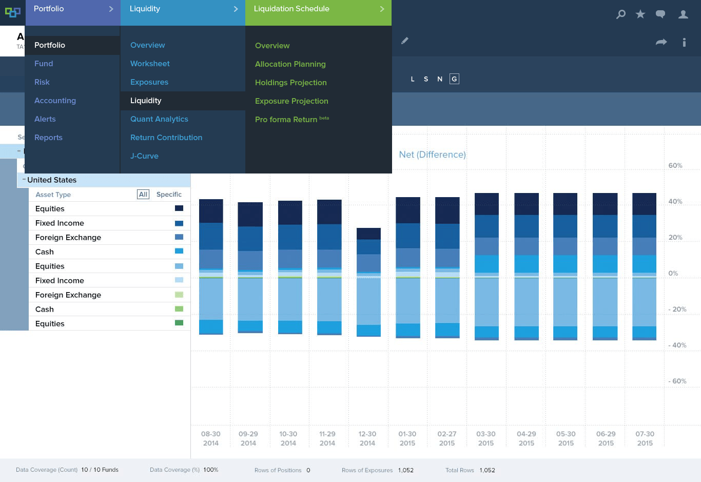 Caissa's financial analytics platform used extensively by asset managers for complex analysis and projections, is known for its ability to look deeply at exposure and risk across the entire spectrum of asset classes. The platform brings comprehensive financial data together into one place where it can then be accessed and manipulated.